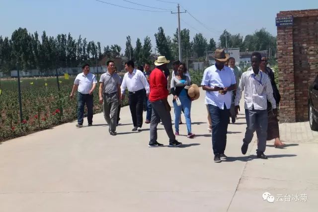2017年5月16日,風和日麗,青云流蘇,來自吉布提的考察團一行來到【云臺冰菊】基地進行參觀、交流,本公司董事長宋曉龍熱情接待了來訪考察團,親自帶領(lǐng)國外友人參觀云臺冰菊基地,并就云臺冰菊的歷史淵源、發(fā)展歷程、種植過程及特色亮點作了生動而詳細的介紹。
