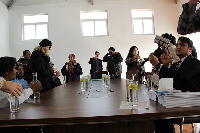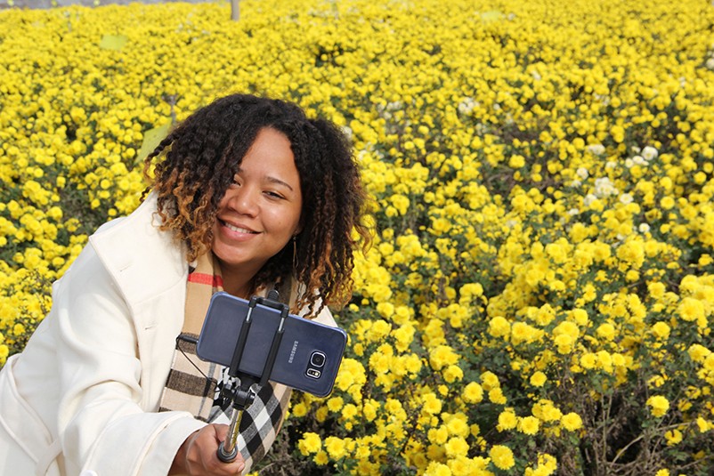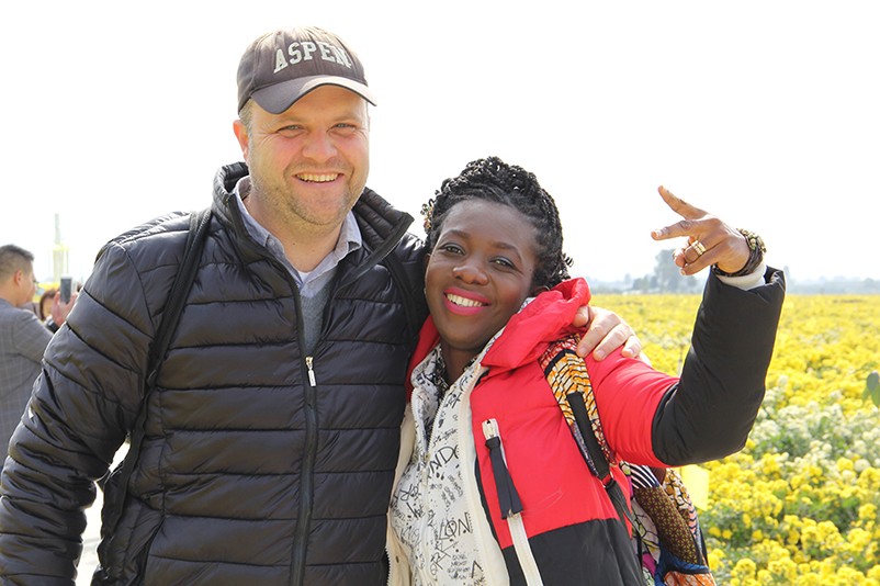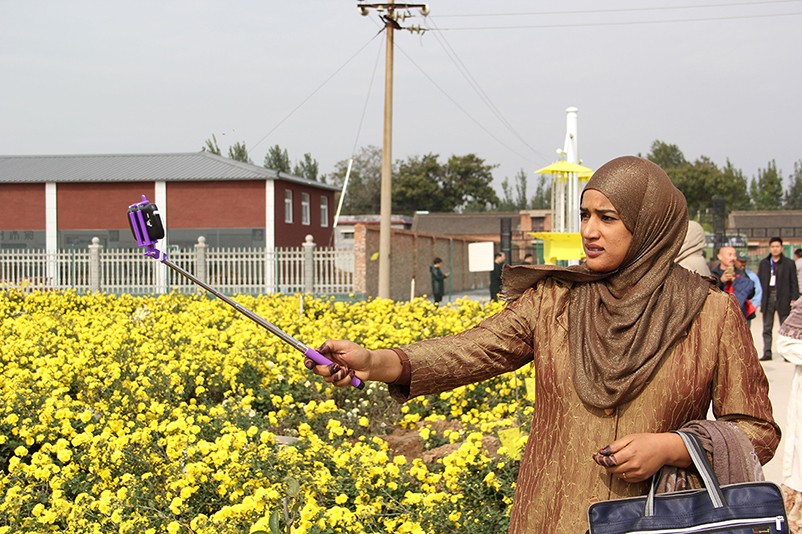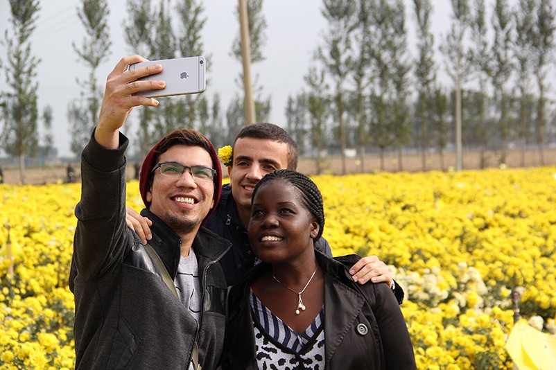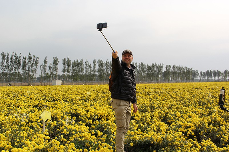 這也在拍,那也在拍,看來這些外國專家對咱們的云臺冰菊很有興趣么~各類膚色的人聚在一起共同賞菊品菊,場面和諧極了,看來不僅藝術能促進各國間的文化交流,農(nóng)業(yè)照樣有聚集人心的魅力?。?/p>